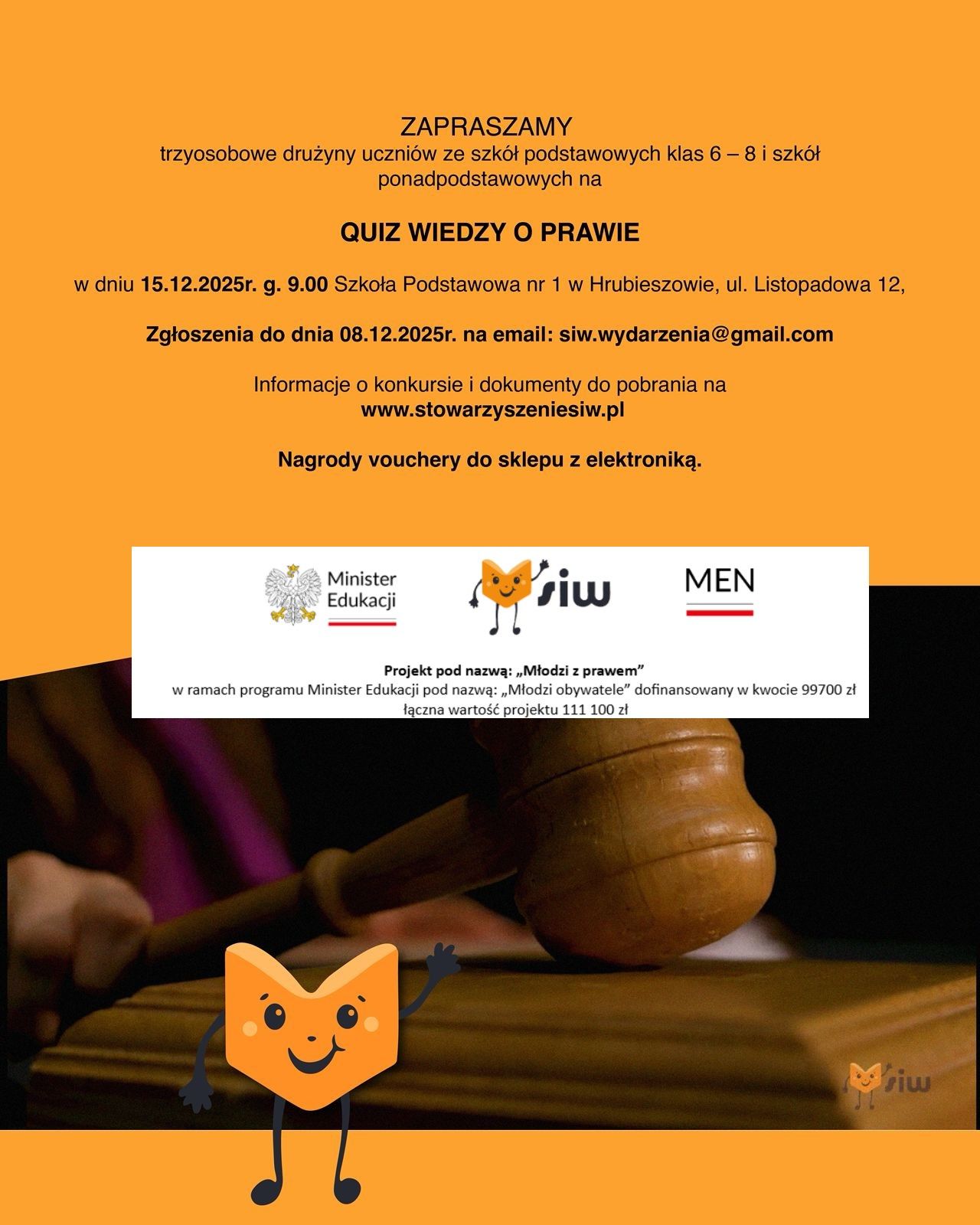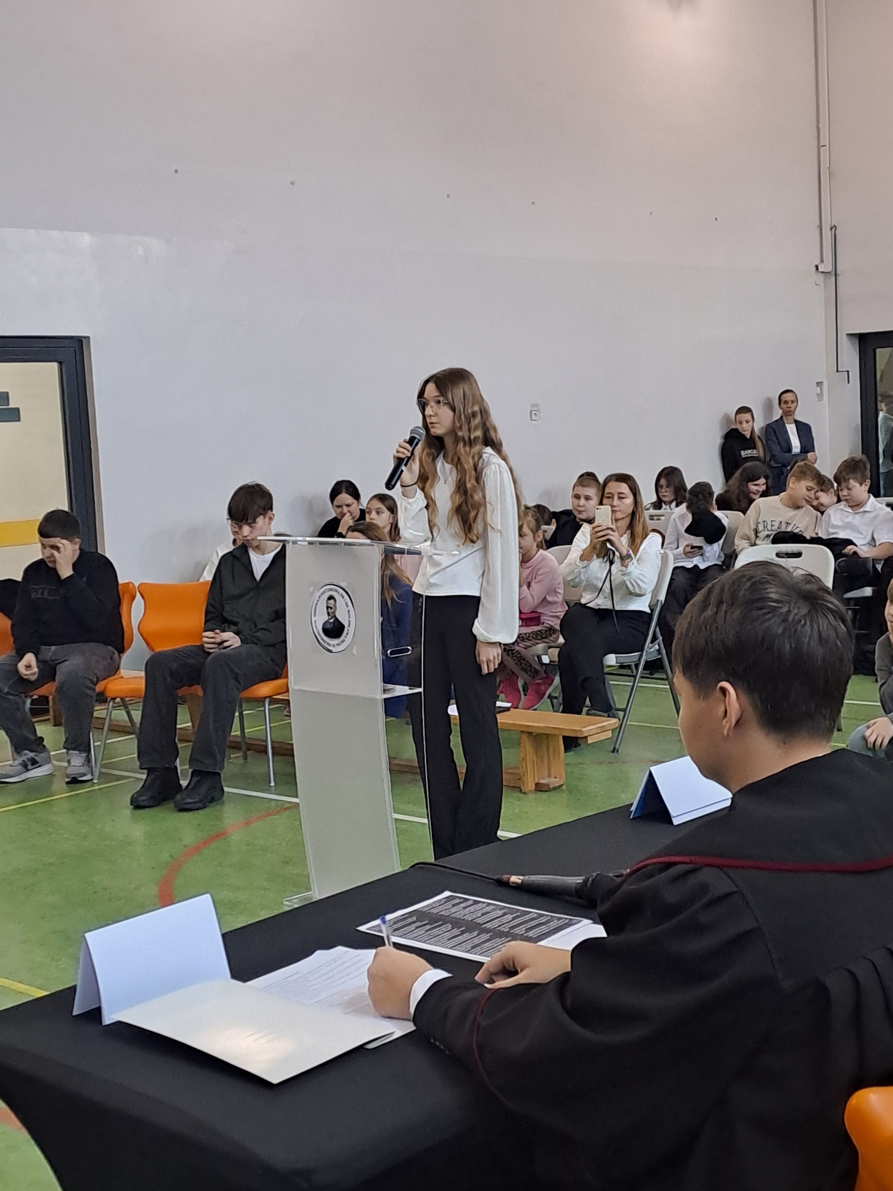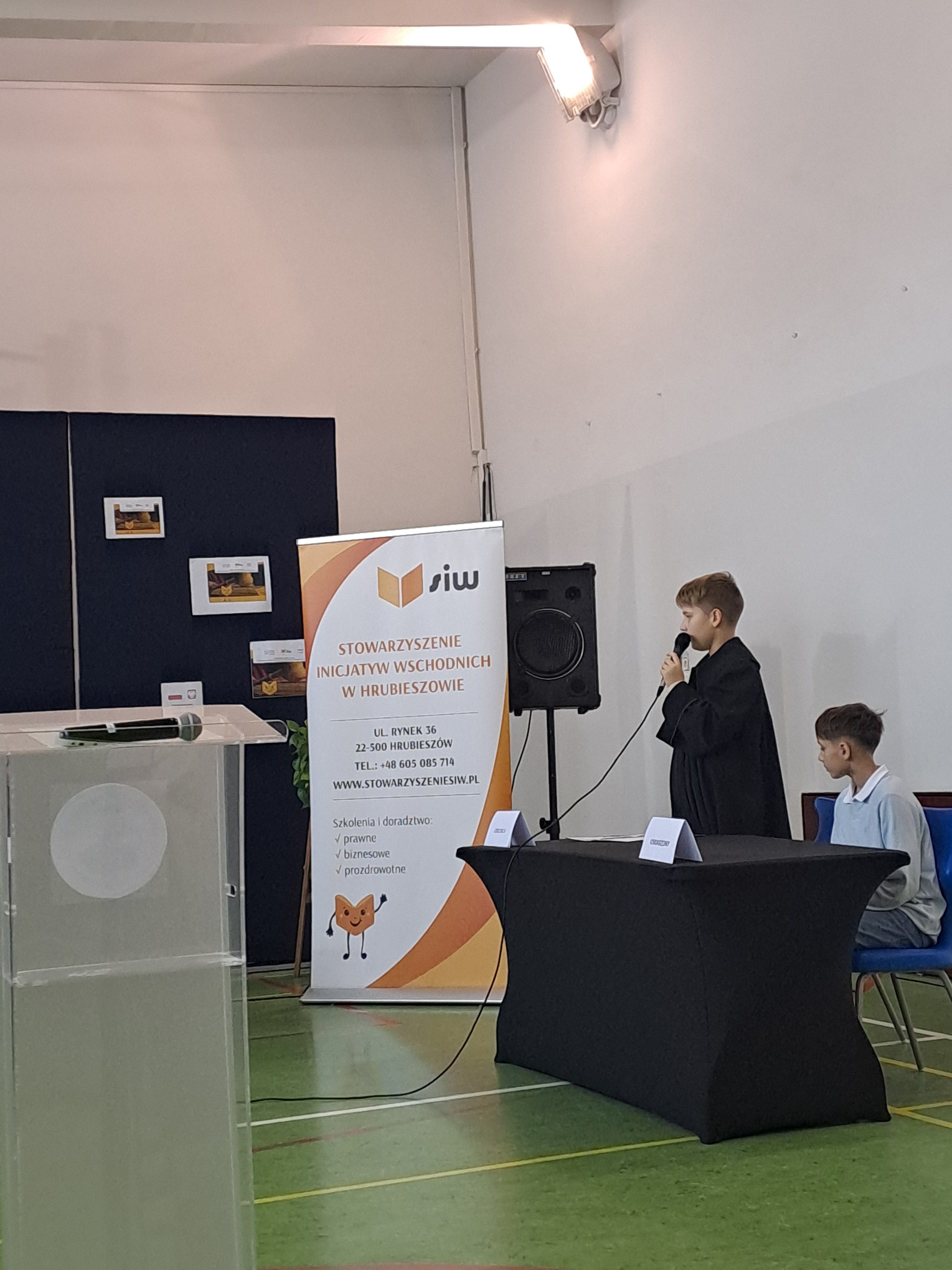 w dniu 11.12.2025r. g. 9.00 Szkoła Podstawowa nr 1 w Hrubieszowie, ul. Listopadowa 12 odbył się Konkurs Symulacja Rozprawy Sądowej