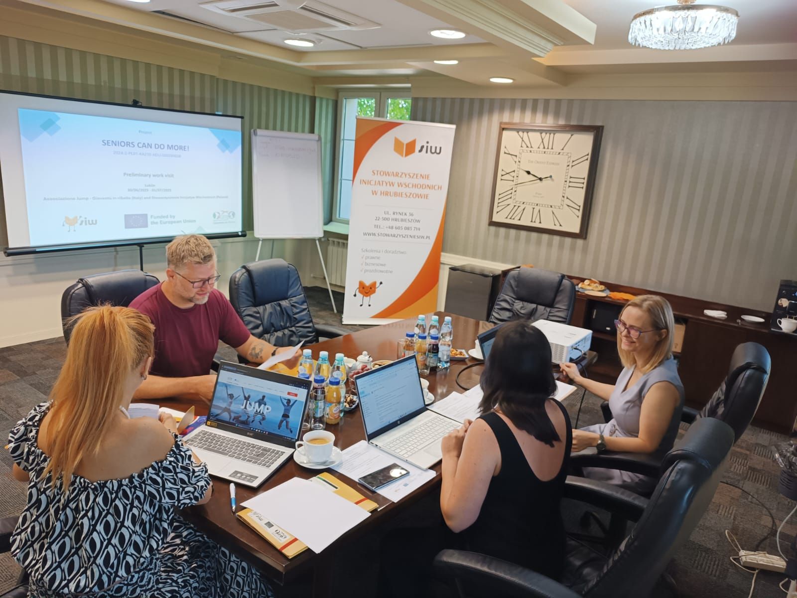 Pierwsze oficjalne spotkanie robocze zespołów projektu: Senior może więcej! Erika i Pietro -JUMP - Gioventù in riSalto, Tomasz i Magdalena Stowarzyszenie Inicjatyw Wschodnich. Ustaliliśmy najważniejsze terminy i szczególny naszych działań. A teraz do roboty ... :)