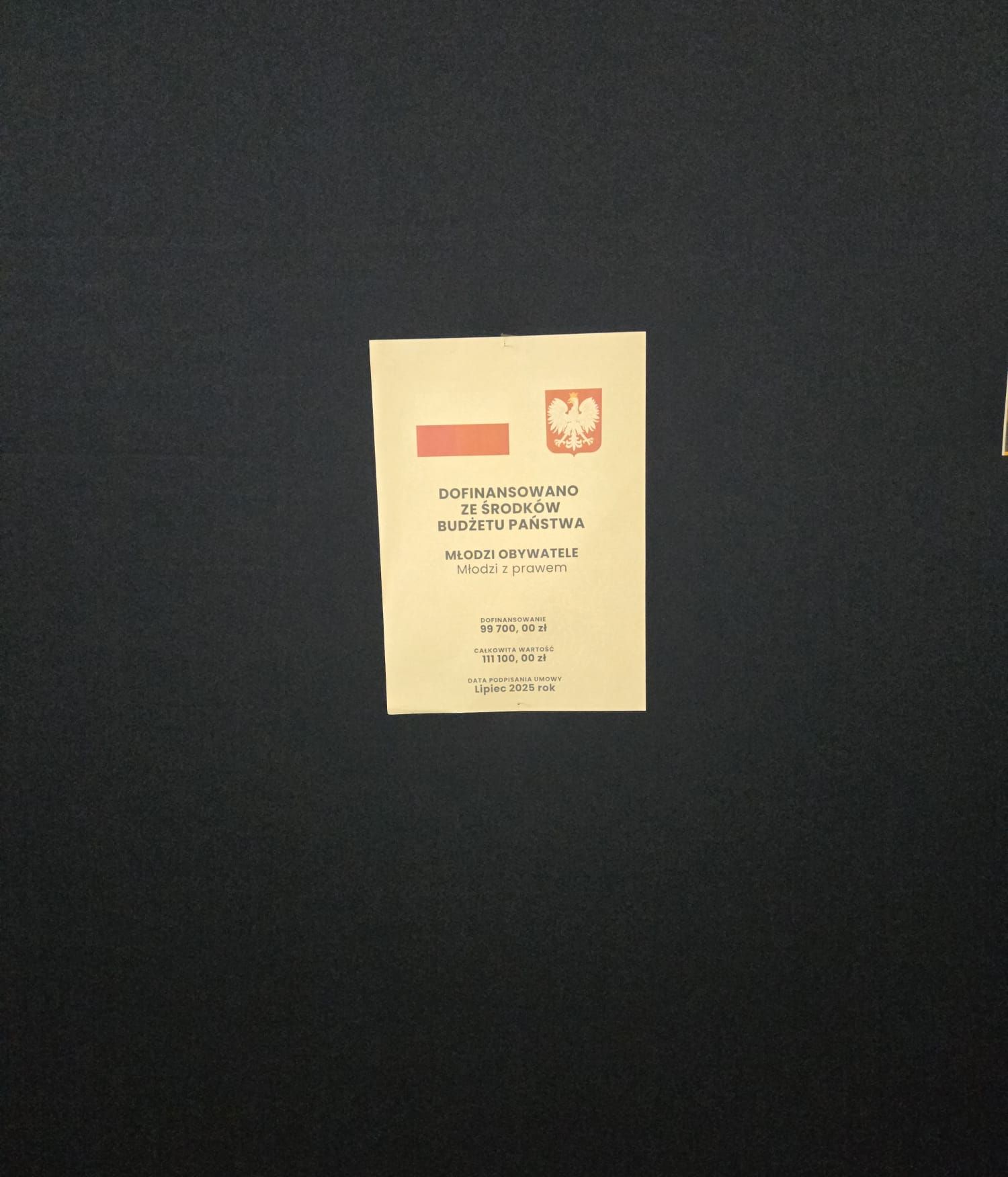 Projekt pn: "Młodzi z prawem" w ramach programu Minister Edukacji pod nazwą: „Młodzi obywatele” dofinansowany w kwocie 99700 zł