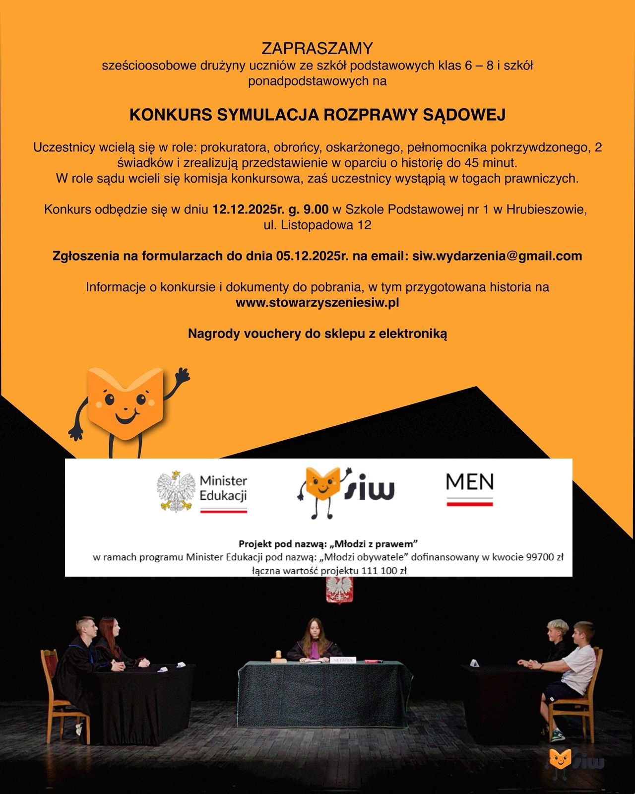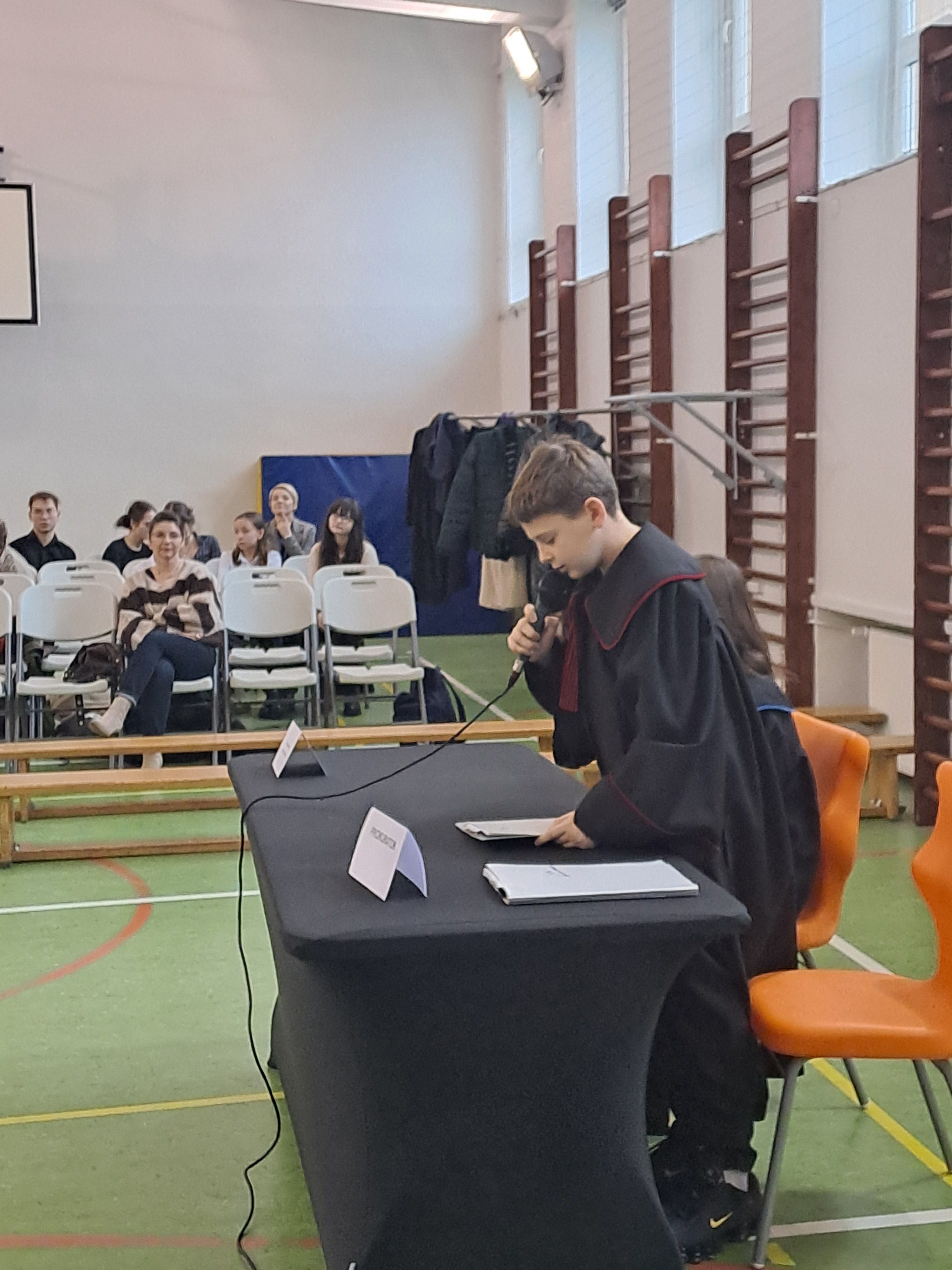 w dniu 11.12.2025r. g. 9.00 Szkoła Podstawowa nr 1 w Hrubieszowie, ul. Listopadowa 12 odbył się Konkurs Symulacja Rozprawy Sądowej